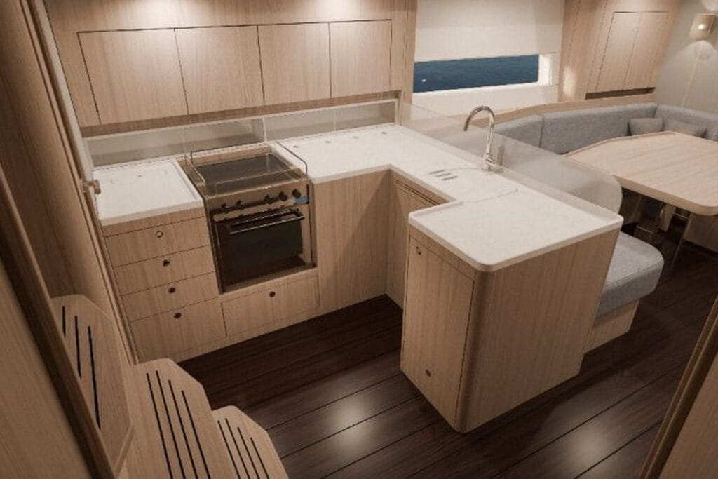 Et tydeligere skritt fremover finner vi på systemsiden. Arcona 465 Mk II leveres med oppgradert elektronikk, 24-volts elektrisk anlegg og litiumbatterier som standard. Dette plasserer båten blant de mer moderne alternativene i segmentet, og legger til rette for høyere energikapasitet og bedre driftssikkerhet.