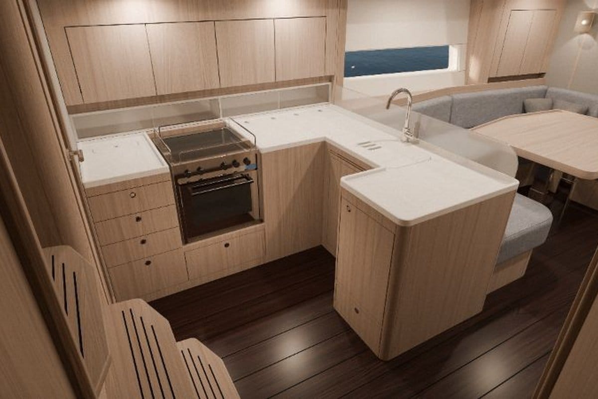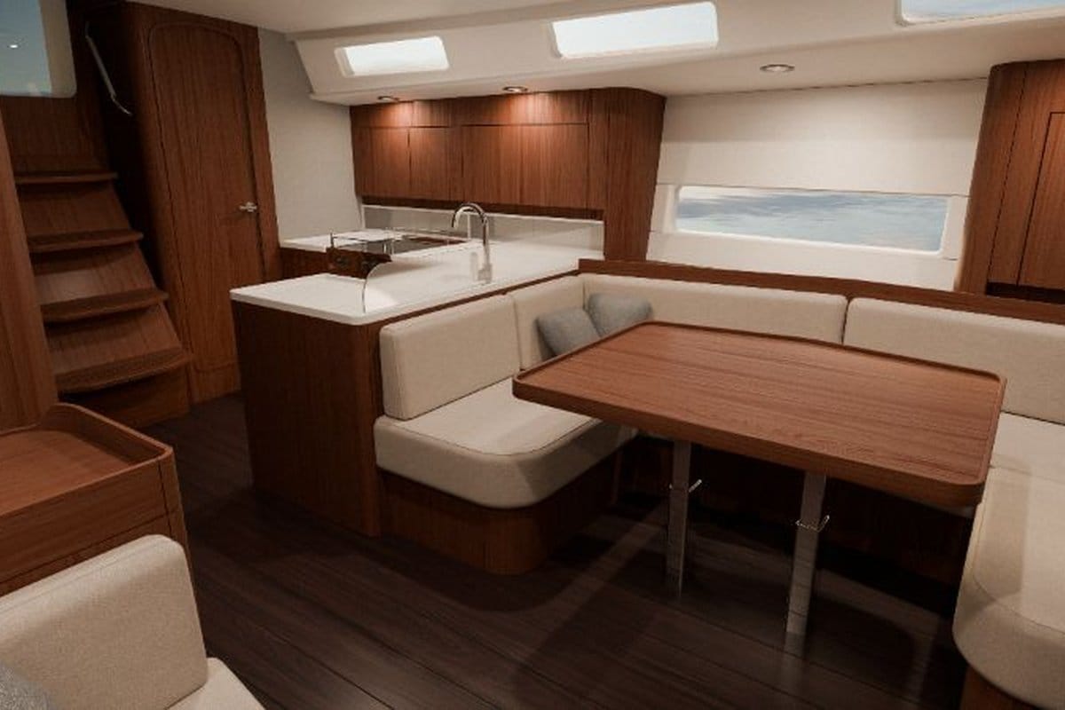 Dekkslayouten er justert med integrert baugspryd som standard, samt mulighet for badeplattform akter. Nye rattpidestaler, hentet fra Arcona 50, skal gi bedre ergonomi og brukervennlighet i cockpit. Endringene retter seg særlig mot seiling med lite mannskap, som i økende grad er et krav i denne størrelsen.