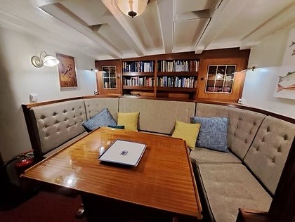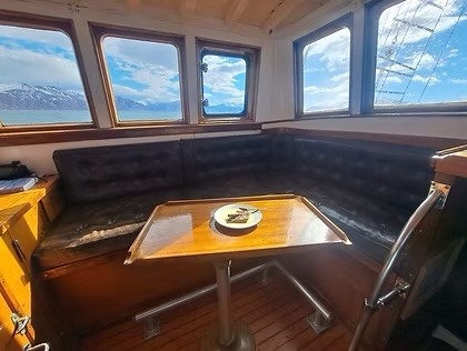 Styrhuset fungerer både som arbeidsplass og oppholdsrom, med en lun og koselig salong og god utsikt. Båten har tre doble gjestekabiner, i tillegg til ekstra køyer i hoved salongen. Ombord finnes fullt utstyrt bysse og rikelig lagringsplass for proviant og ekspedisjonsutstyr.