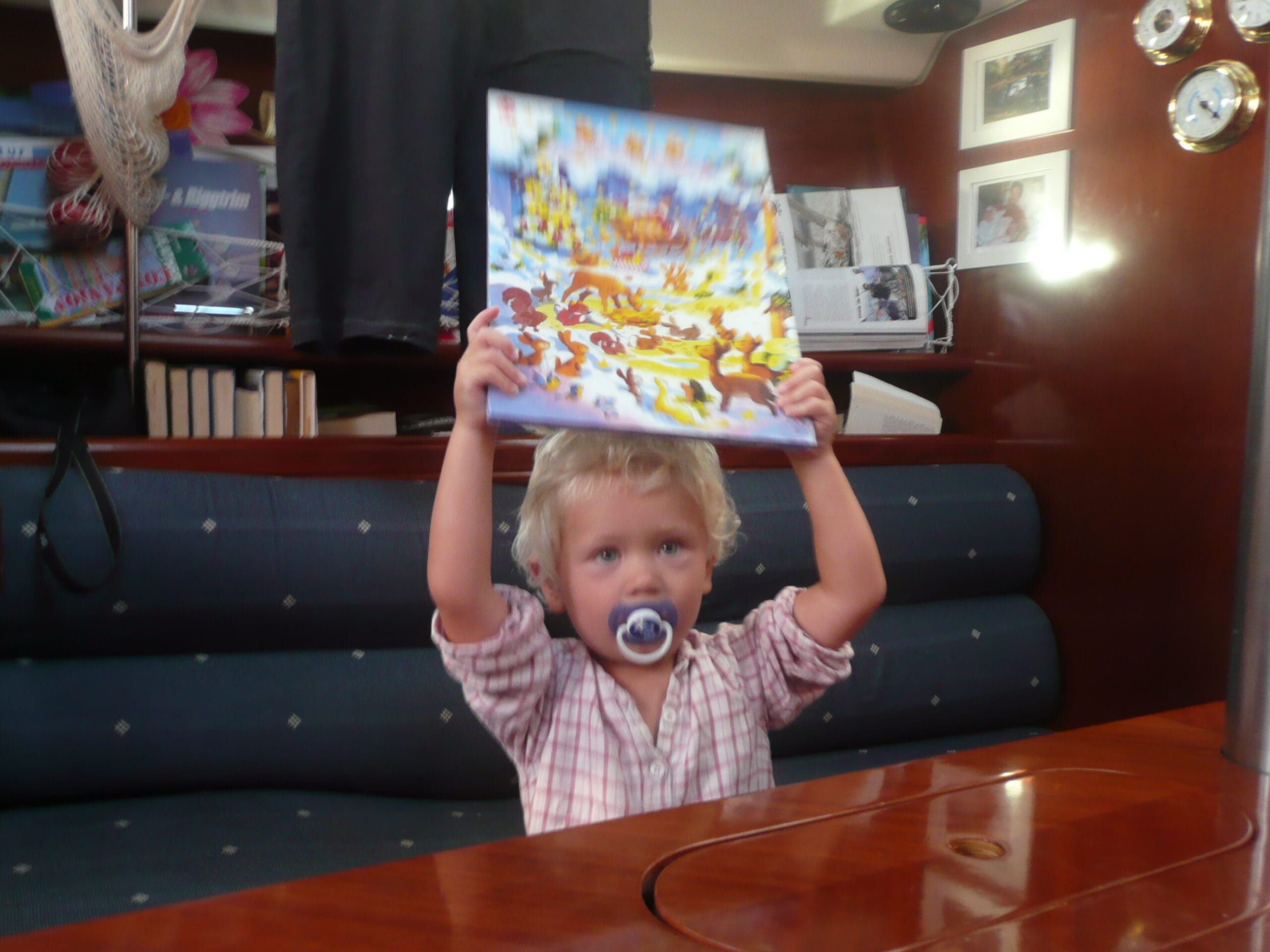 Midt på Atlanterhavet er en 37 fots seilbåt liten og med hav og bølger på alle kanter er det liten boltreplass for små barn. Når verden er begrenset til fremre del av cockpiten, salongen og forpiggen må man være kreativ for å skape aktivitet og trivsel. For å gjøre dagene på sjøen morsomme og varierte, fant vi på mye av det samme som man gjør hjemme. Vi bygde hytte under salongbordet av tepper og puter, vi leste bøker, vi malte og tegnet og vi hadde med PC med DVD-filmer. I dag er mye skjermtid helt normalt, men vi hadde litt dårlig samvittighet for at Disney og Pixar sto for mye av underholdningen underveis.