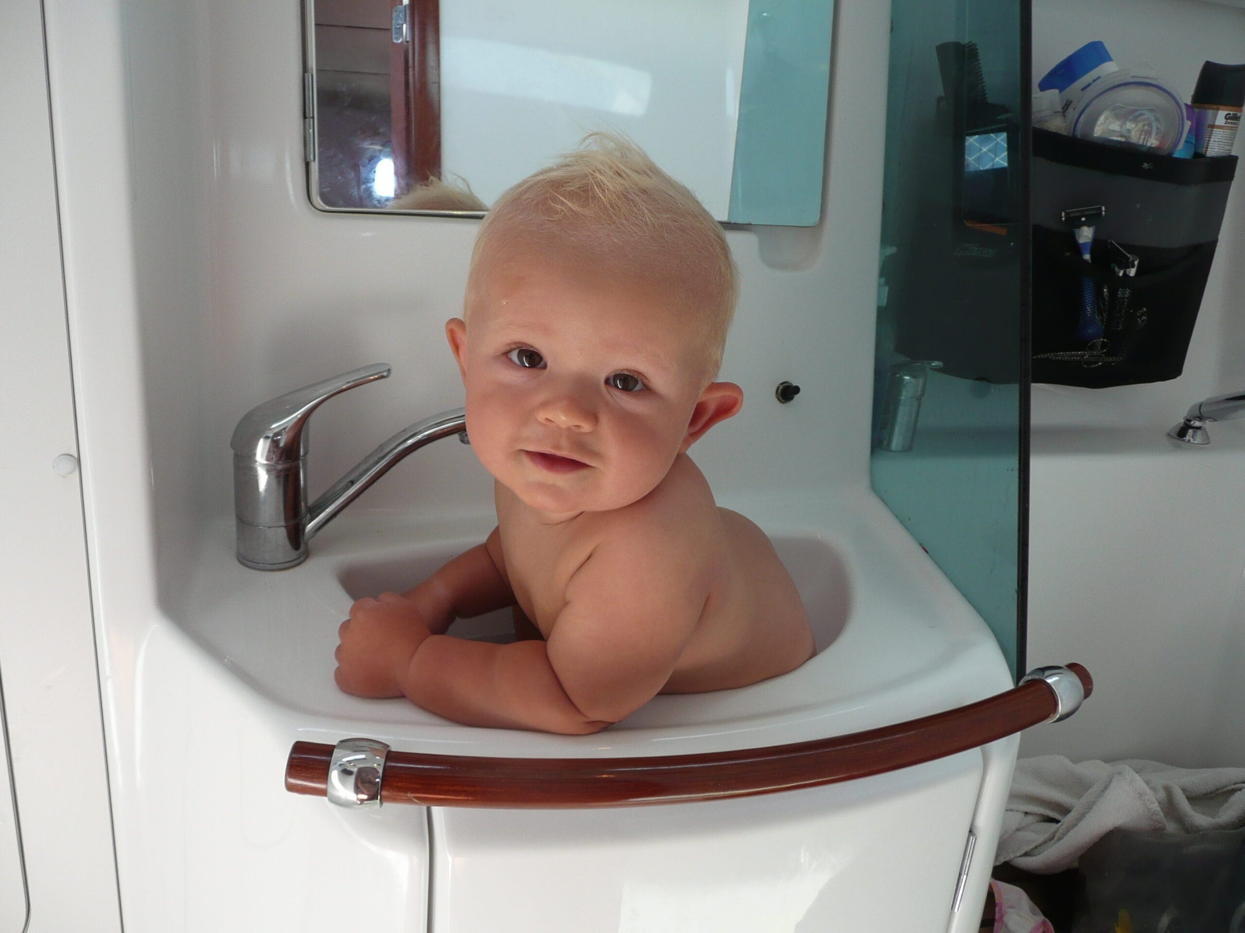 For at båten skulle være trygg og sikker for både store og små fikk vi ettermontert masse sikkerhetsutstyr og annet langturutstyr. I tillegg gjorde vi mange tilpasninger for å skape en sikker og barnevennlig båt. Blant annet med sikkerhetsnett langs rekka, barnesykkelsete i cockpiten, lekegrind i aktekøya så det skulle bli enkelt å «fortøye» barna sikkert om situasjonen krevde det. Vår erfaring er allikevel at små barn ikke nødvendigvis trenger så mye tilpasninger og fancy utstyr. Barn er utrolig tilpasningsdyktige og har det stort sett bra uansett hvor de er.