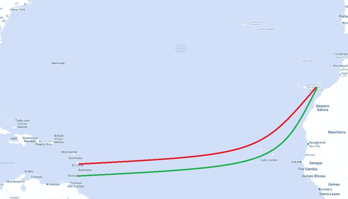 Fra Las Palmas på Gran Canaria setter hundrevis av båter kursen vestover hver vinter. Grunnen er enkel: passatvindene. Disse stabile, varme østavindene etablerer seg mellom november og januar og blåser deg tvers over Atlanteren til Karibia på en relativt komfortabel rute. Distanse og tid er imponerende. Fra Las Palmas til Saint Lucia er det omtrent 2 700 nautiske mil, og til Antigua eller Guadeloupe kan det bli opp mot 3 000 nautiske mil. For en vanlig langturbåt på 30–50 fot betyr det mellom 16 og 25 dager til havs.