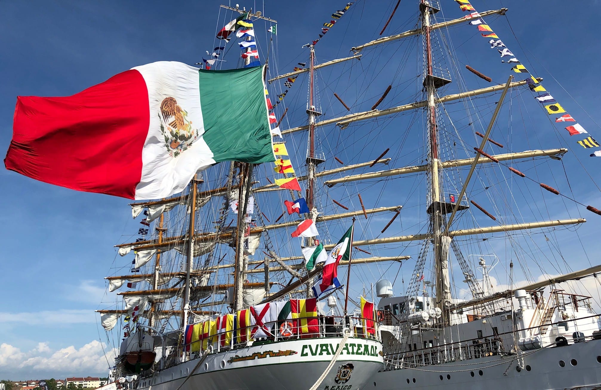 Seilskute flagger til fest på TallShipsRace i Fredrikstad – Foto: Seilfolk.no