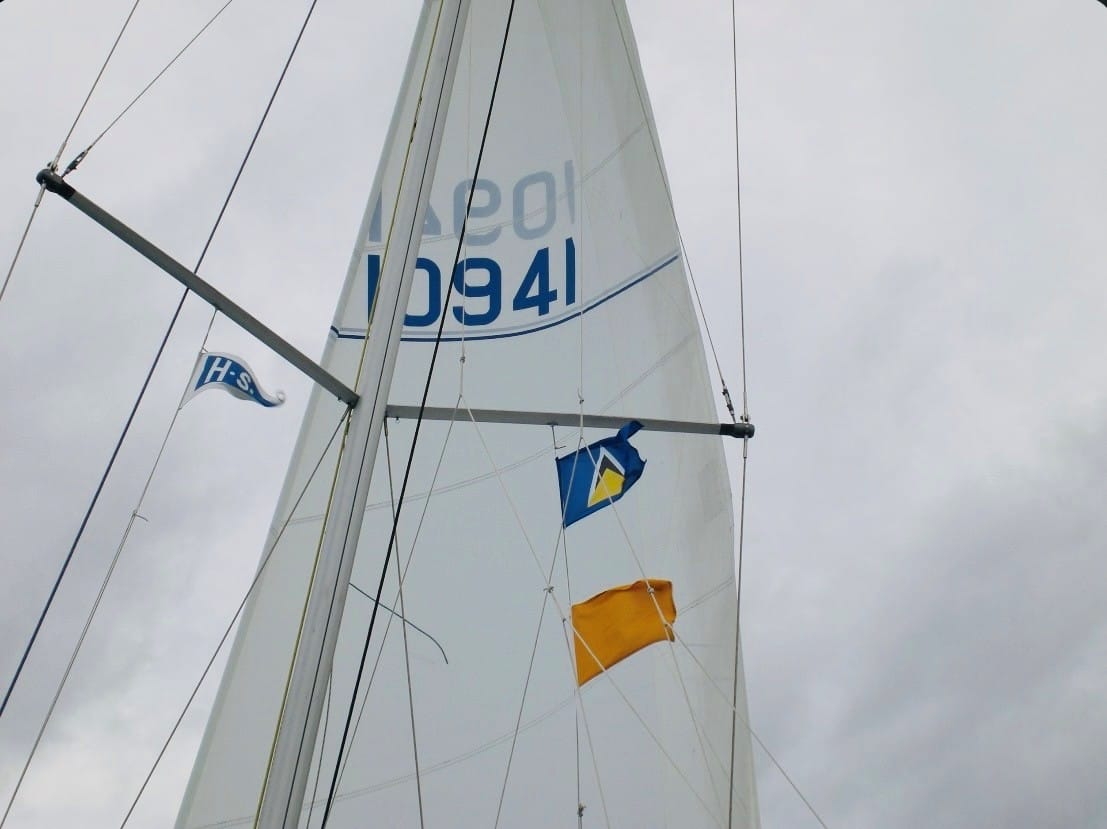 Gjesteflagg til styrbord og klubbvimpel til babord. Ankomst St.Lucia – Foto: Seilfolk.no